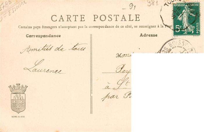 13877569 Epinay-sur-Orge 91 Essonne Rue de Corbeil postalisch gelaufen Erhaltung siehe scans [FriedD77] carte postale Frie Katcode 11170091391216