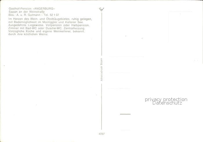 Eppan Suedtirol Gasthof Pension Angerburg an der Weinstrasse postalisch nicht gelaufen Erhaltung siehe scans