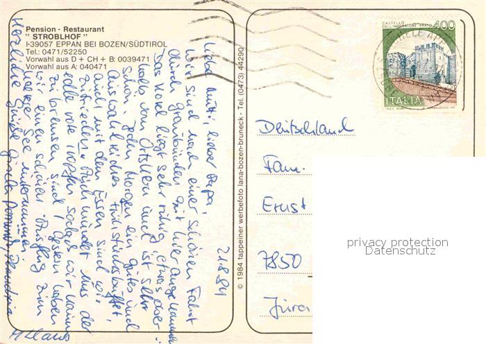 old postcard Eppan Suedtirol Pension Stroblhof postalisch gelaufen Erhaltung siehe scans [NatalD47]