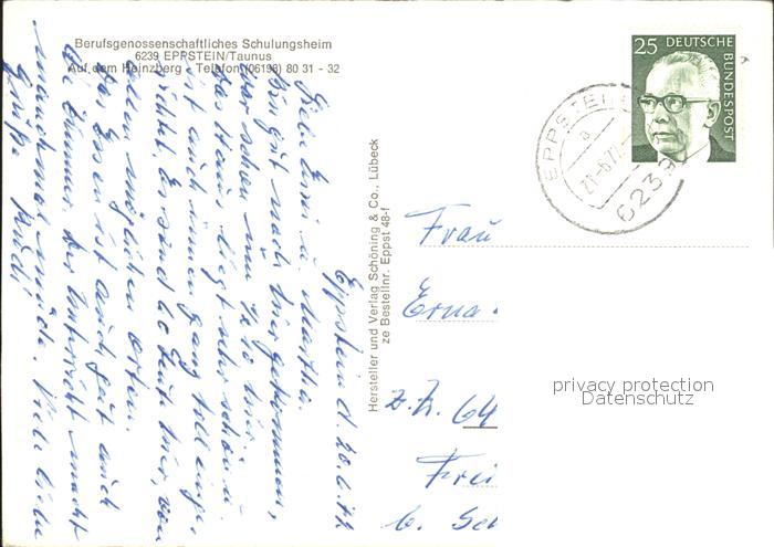 72009810 alte Postkarte Eppstein Taunus Berufsgenossenschaftliches Schulungsheim postalisch gelaufen Erhaltung siehe scans KatCode: 11110006436002