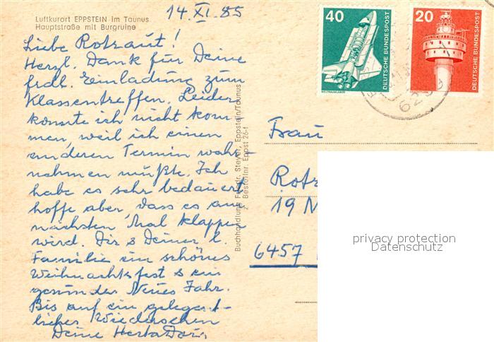 73259282 alte Postkarte Eppstein Taunus Hauptstrasse Burgruine postalisch gelaufen Erhaltung siehe scans [NatalD47] KatCode: 11110006436002