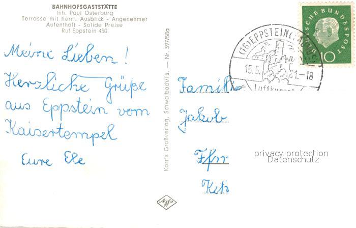 73254958 alte Postkarte Eppstein Taunus Kaisertempel postalisch gelaufen Erhaltung siehe scans [WerneD78] KatCode: 11110006436002