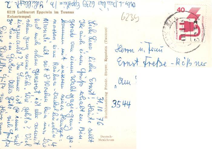 73935794 alte Postkarte Eppstein Taunus Kaisertempel postalisch gelaufen Erhaltung siehe scans [WerneD78] KatCode: 11110006436002