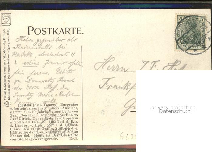 41545981 Eppstein Taunus Künstlerkarte Panorama mit Burg Wappen KatCode 11110006436002