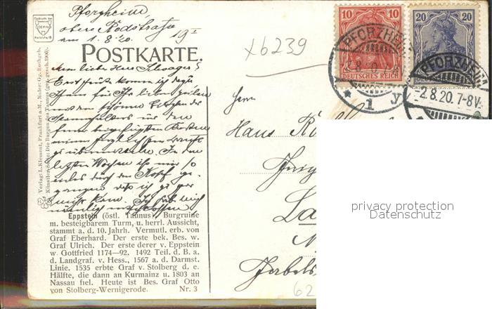 41545980 Eppstein Taunus Künstlerkarte Panorama mit Burg Wappen KatCode 11110006436002
