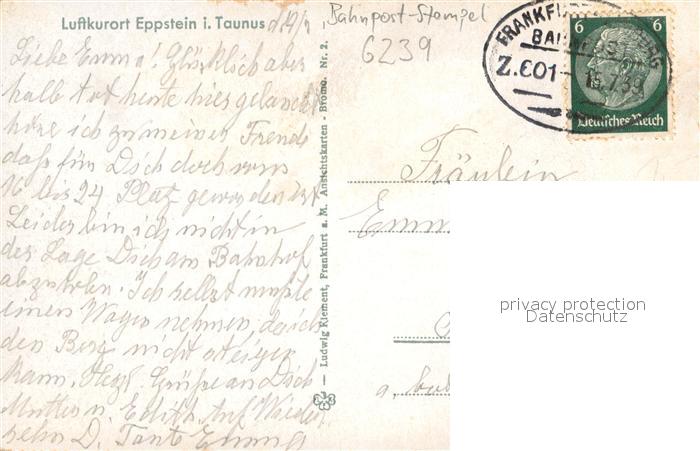 73706512 alte Postkarte Eppstein Taunus Muettererholungsheim der Ev Frauenhilfe Panorama postalisch gelaufen Bahnpost Erhaltung siehe scans [WerneD78] KatCode: 11110006436002