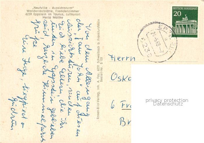 73060138 alte Postkarte Eppstein Taunus Neufville Aussichtsturm postalisch gelaufen Erhaltung siehe scans [FriedD77] KatCode: 11110006436002