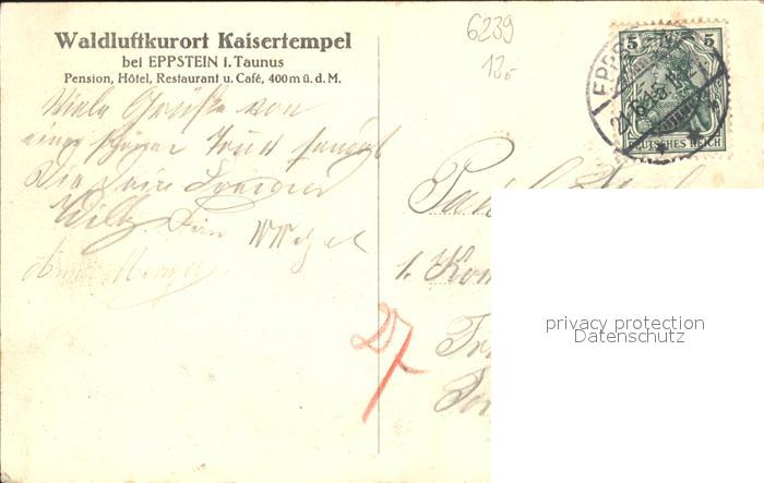 72093959 alte Postkarte Eppstein Taunus Staufen Hotel Kaisertempel postalisch gelaufen Erhaltung siehe scans KatCode: 11110006436002