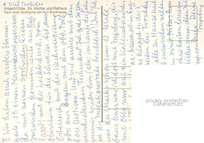 73281619 Erbach Odenwald Evangelische Kirche Rathaus nach einer Zeichnung von Kurt Stockhause postalisch nicht gelaufen Erhaltung siehe scans [NatalD47] KatCode: 11110006437006