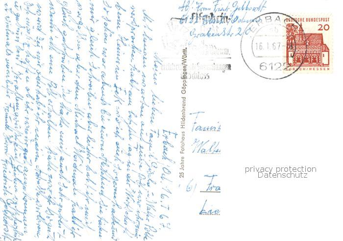 73121706 alte Postkarte Erbach Odenwald Fliegeraufnahme postalisch gelaufen Erhaltung siehe scans [KathaD81] KatCode: 11110006437006