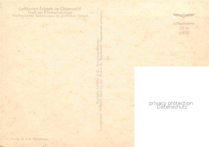72683968 Erbach Odenwald Fliegeraufnahme Schloss postalisch nicht gelaufen Erhaltung siehe scans [WerneD78] KatCode: 11110006437006