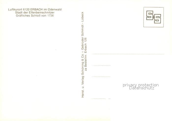 73267384 Erbach Odenwald Graefliches Schloss 18. Jhdt. Stadt der Elfenbeinschnitzer postalisch nicht gelaufen Erhaltung siehe scans [FriedD77] KatCode: 11110006437006