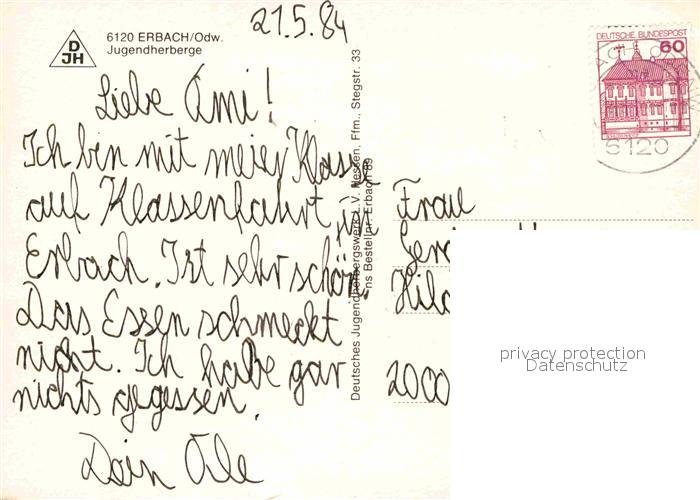 72919055 alte Postkarte Erbach Odenwald Jugendherberge postalisch gelaufen Erhaltung siehe scans [LiesaD40] KatCode: 11110006437006
