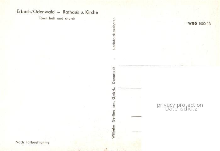 73255290 Erbach Odenwald Rathaus und Kirche postalisch nicht gelaufen Erhaltung siehe scans [WerneD78] KatCode: 11110006437006