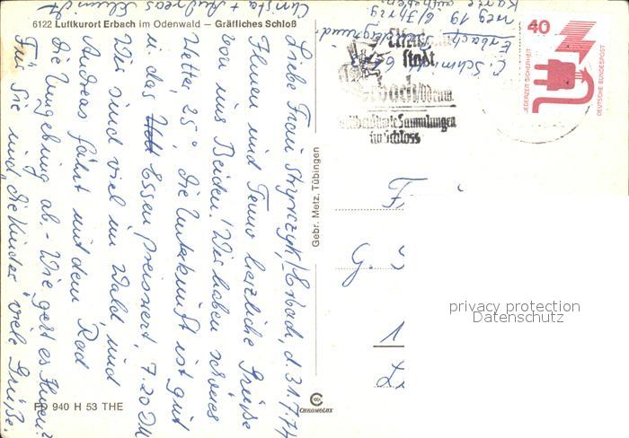 72133011 alte Postkarte Erbach Odenwald Rittersaal Schloss Hirschgalerie postalisch gelaufen Erhaltung siehe scans KatCode: 11110006437006