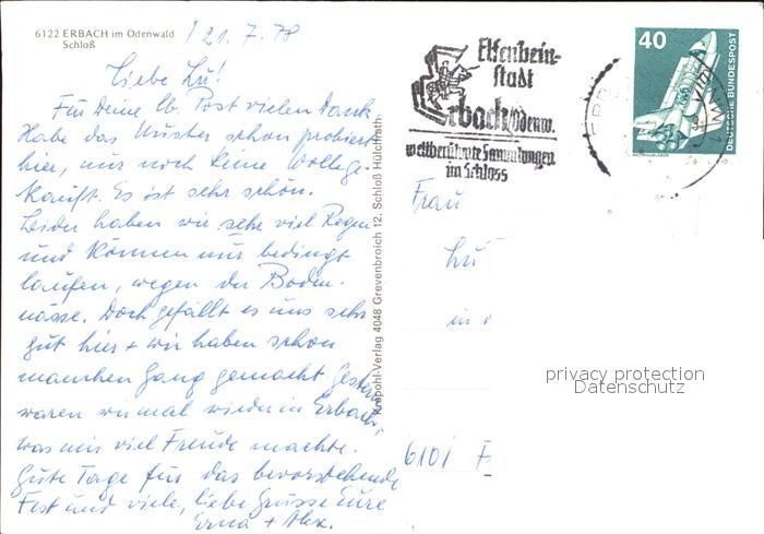 72595412 alte Postkarte Erbach Odenwald Schloss postalisch gelaufen Erhaltung siehe scans [WerneD78] KatCode: 11110006437006
