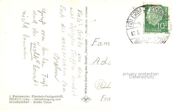 72999692 Erbach Odenwald Schloss Kirche postalisch nicht gelaufen Erhaltung siehe scans [AndreD76] KatCode: 11110006437006