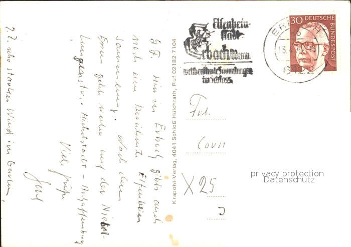 71905644 alte Postkarte Erbach Odenwald Schloss Rittersaal Gewehrkammer Vestibuel postalisch gelaufen Erhaltung siehe scans KatCode: 11110006437006