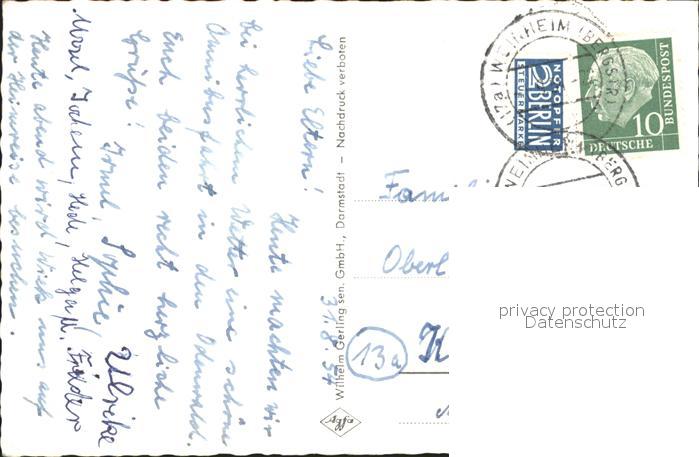 72225645 alte Postkarte Erbach Odenwald Schloss Total Im Staedtel Schlosshof Jugendherberge postalisch gelaufen Erhaltung siehe scans KatCode: 11110006437006