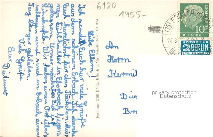 73698040 alte Postkarte Erbach Odenwald Schlosshof postalisch gelaufen Erhaltung siehe scans [FriedD77] KatCode: 11110006437006