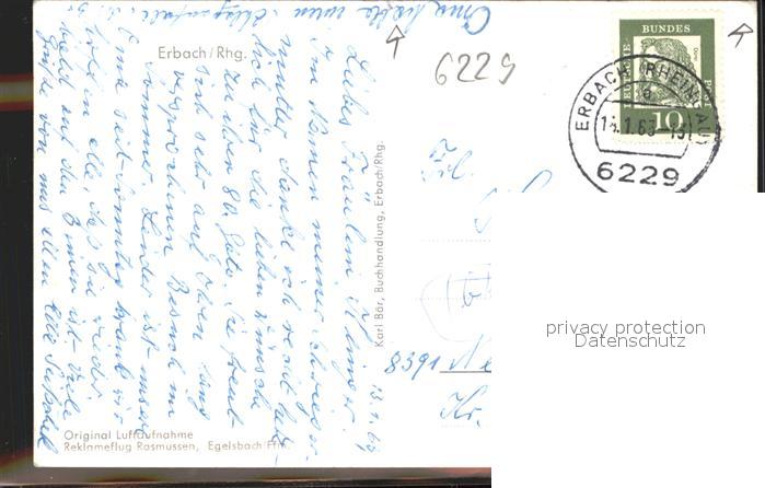 41581328 Erbach Rheingau Fliegeraufnahme postalisch nicht gelaufen Erhaltung siehe scans Alte Ansichtskarte Postkarte Stef Katcode 11110006439003