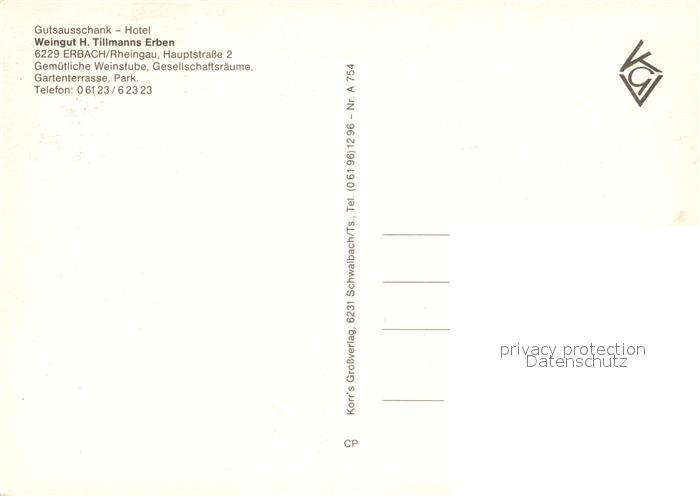 73256518 Erbach Rheingau Weingut H. Tillmanns Erben Gutsausschank Hotel Kirche postalisch nicht gelaufen Erhaltung siehe scans [FriedD77] KatCode: 11110006439003