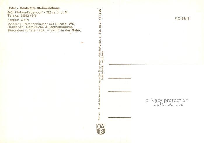 73169958 Erbendorf Hotel Gasthaus Steinwaldhaus postalisch nicht gelaufen Erhaltung siehe scans [KathaD81] KatCode: 11110009377116