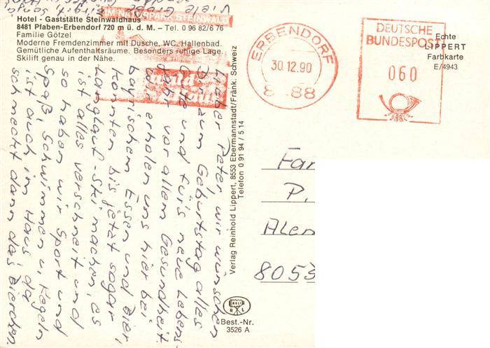 73878403 alte Postkarte Erbendorf Hotel Gaststaette Steinwaldhaus postalisch gelaufen Erhaltung siehe scans [WerneD78] KatCode: 11110009377116