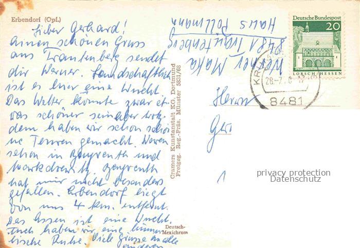 74105218 alte Postkarte Erbendorf Tirschenreuth Bayern Fliegeraufnahme postalisch gelaufen Erhaltung siehe scans [FriedD77] KatCode: 11110009377116