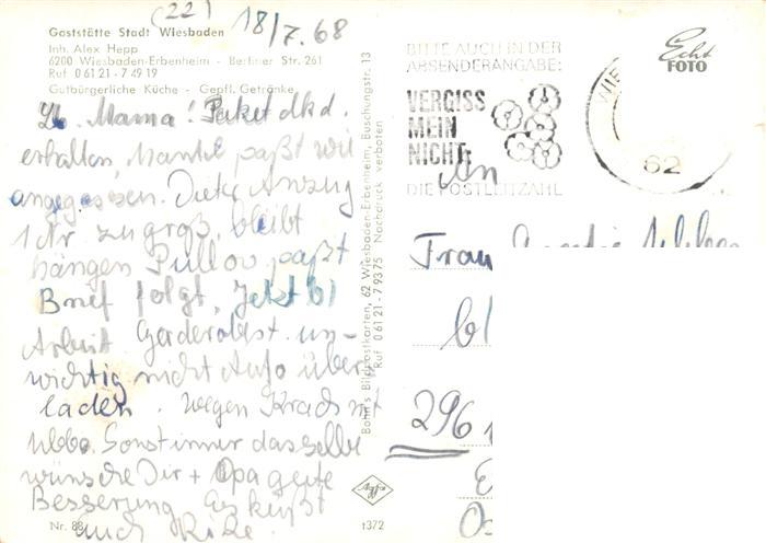 73877922 alte Postkarte Erbenheim Wiesbaden Gaststaette Stadt Wiesbaden Gastraum Theke postalisch gelaufen Erhaltung siehe scans [FriedD77] KatCode: 11110006414000