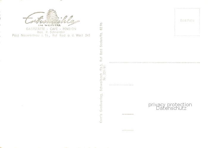 73863594 Erbismuehle Neuweilnau Weilrod Gaststaette Cafe Pension Erbismuehle Terrasse postalisch nicht gelaufen Erhaltung siehe scans [WerneD78] Wern Katcode 11110006434013