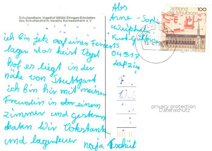 73653288 alte Postkarte Erbstetten Ehingen Schullandheim Vogelhof postalisch gelaufen Erhaltung siehe scans [WerneD78] KatCode: 11110008425033