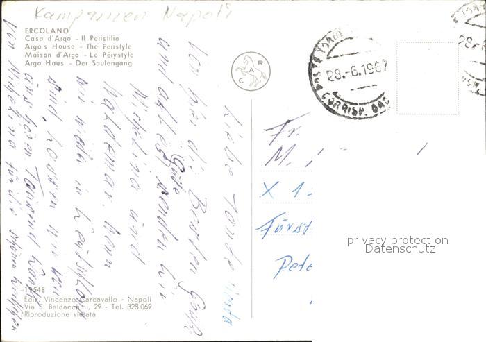 old postcard Ercolano Arge Haus Saeulengang postalisch gelaufen Erhaltung siehe scans