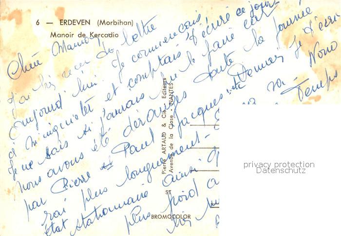 13581904 Erdeven Manoir de Kercadio postalisch nicht gelaufen Erhaltung siehe scans [FriedD77] Frie Katcode 11170056156054