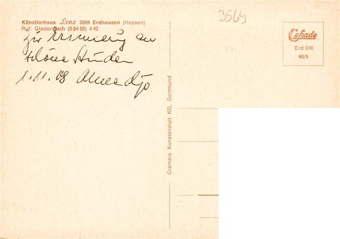 73935213 Erdhausen Gladenbach Hessen Kuenstlerhaus Lenz postalisch nicht gelaufen Erhaltung siehe scans [FriedD77] KatCode: 11110006534010