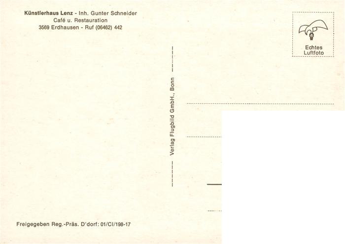 73919487 Erdhausen Gladenbach Hessen Kuenstlerhaus Lenz Cafe Restauration Fliegeraufnahme postalisch nicht gelaufen Erhaltung siehe scans [FriedD77] KatCode: 11110006534010