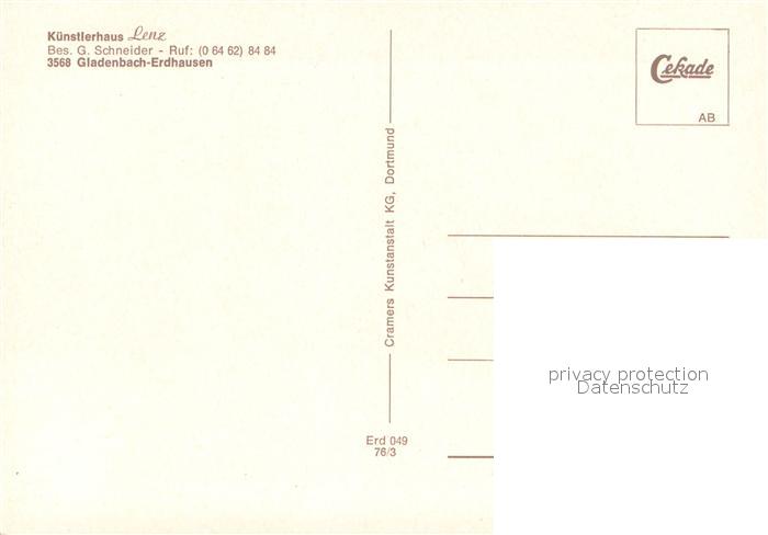 73742407 Erdhausen Gladenbach Kuenstlerhaus Lenz postalisch nicht gelaufen Erhaltung siehe scans [WerneD78] KatCode: 11110006534010