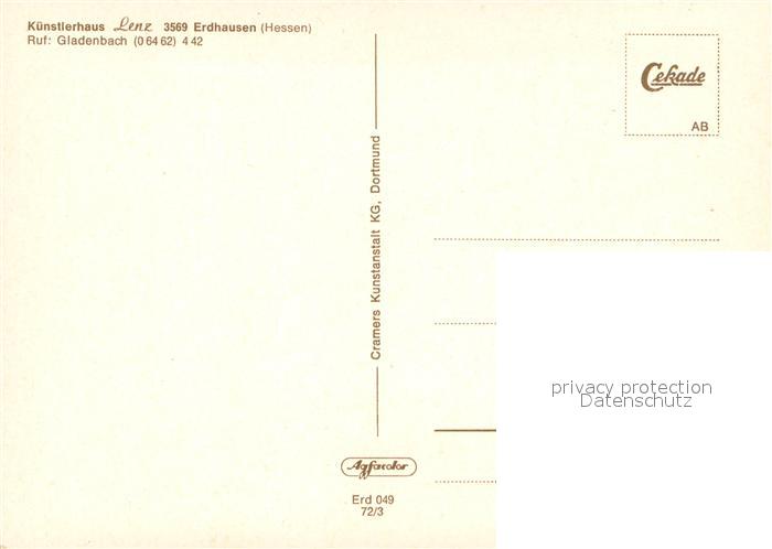 73642019 Erdhausen Gladenbach Kuenstlerhaus Lenz postalisch nicht gelaufen Erhaltung siehe scans [WerneD78] KatCode: 11110006534010