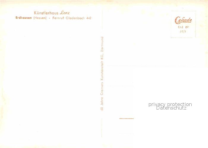 72849356 Erdhausen Gladenbach Kuenstlerhaus Lenz postalisch nicht gelaufen Erhaltung siehe scans [KathaD81] KatCode: 11110006534010