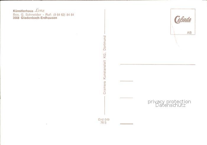 72321316 Erdhausen Gladenbach Kuenstlerhaus Lenz postalisch nicht gelaufen Erhaltung siehe scans KatCode: 11110006534010