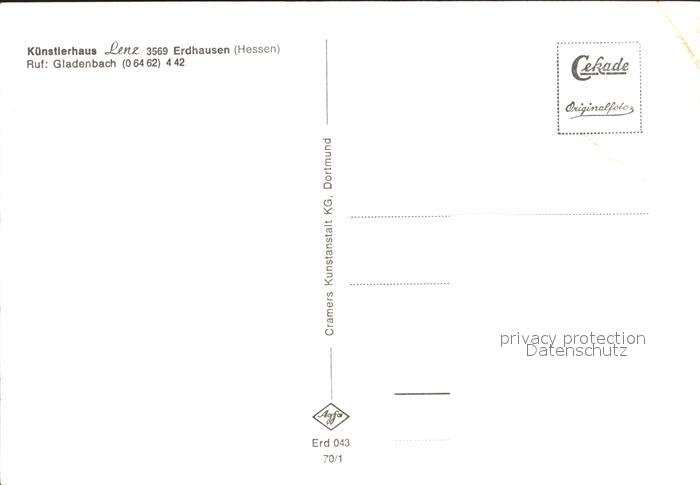 72097837 Erdhausen Gladenbach Kuenstlerhaus Lenz postalisch nicht gelaufen Erhaltung siehe scans KatCode: 11110006534010
