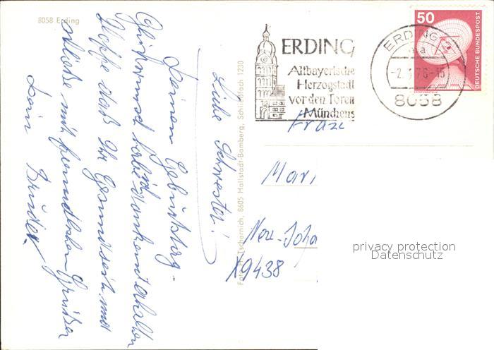 72368013 alte Postkarte Erding Kirche Neubauten Hochhaeuser postalisch gelaufen Erhaltung siehe scans KatCode: 11110009177117