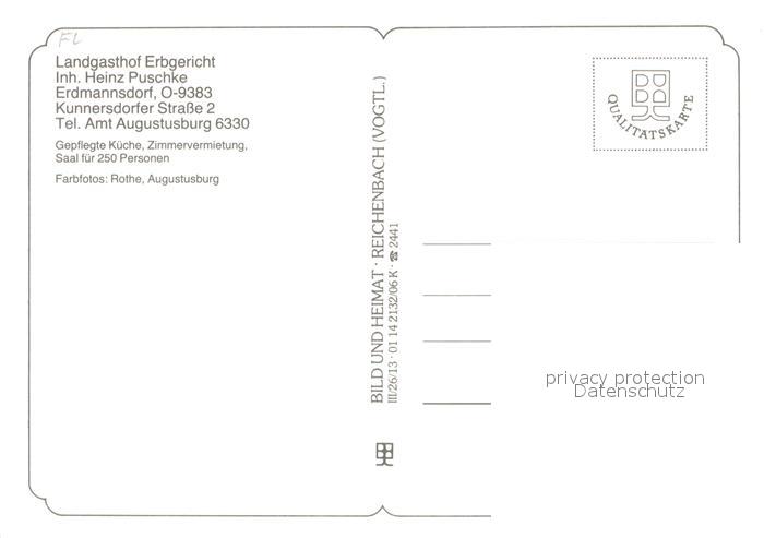 73742429 Erdmannsdorf Augustusburg Landgasthof Erbgericht Gastraeume Zimmer postalisch nicht gelaufen Erhaltung siehe scans [WerneD78] KatCode: 11110014177010