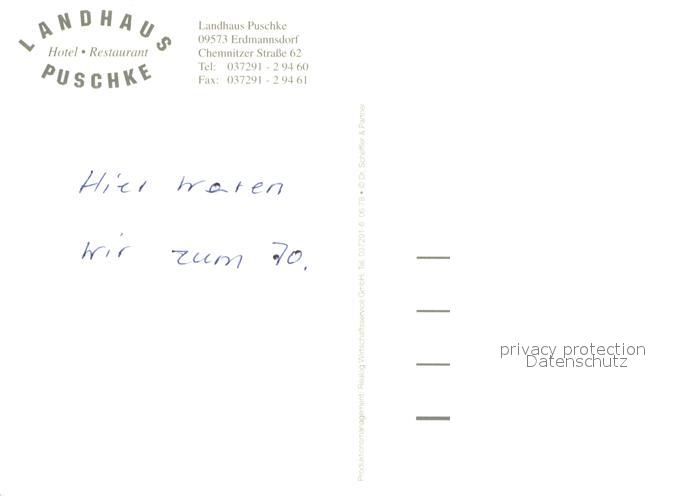 73652886 Erdmannsdorf Augustusburg Landhaus Puschke Hotel Restaurant postalisch nicht gelaufen Erhaltung siehe scans [FriedD77] KatCode: 11110014177010