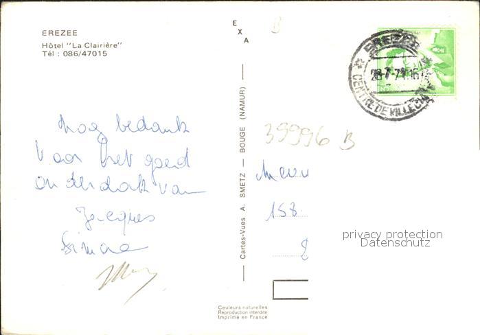 71914943 carte postale Erezee Hotel La Clairière postalisch gelaufen Erhaltung siehe scans KatCode: 11070083009548
