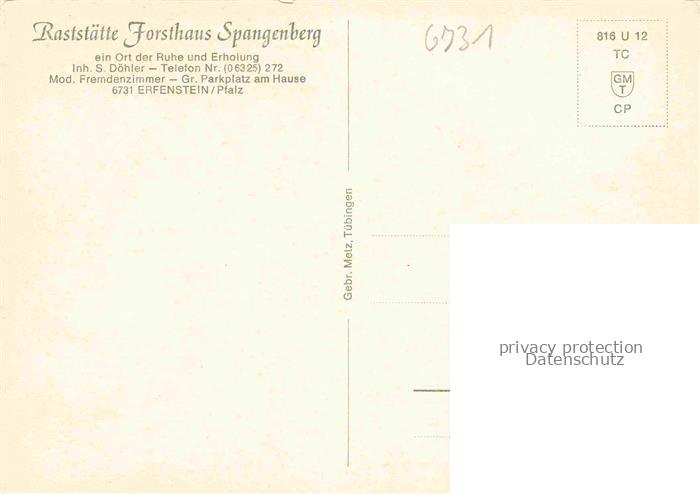 74047364 Erfenstein Raststaette Forsthaus Spangenberg postalisch nicht gelaufen Erhaltung siehe scans [FriedD77] KatCode: 11110007332016