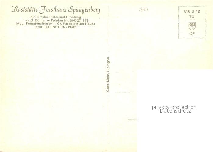 73569359 Erfenstein Rastst?tte Forsthaus Spangenberg postalisch nicht gelaufen Erhaltung siehe scans [PaolaD17] KatCode: 11110007332016