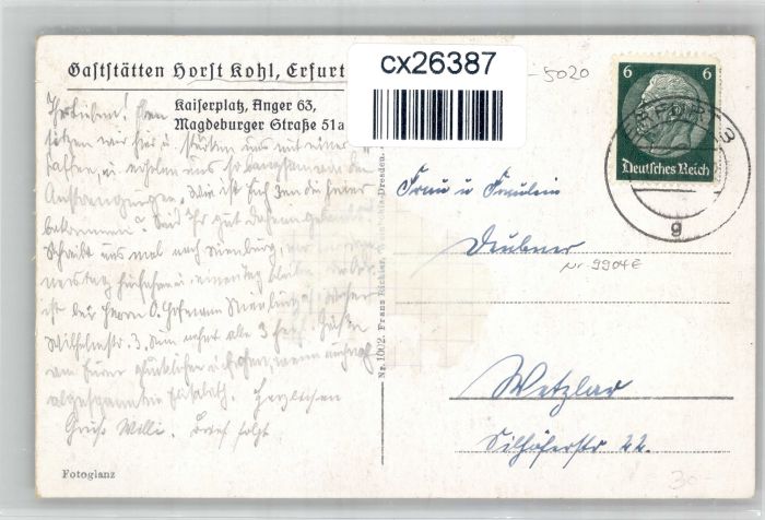 30838390 alte Postkarte Erfurt Aallerheiligenstrasse Kuerschnergasse Paulstrasse Hermannsplatz postalisch gelaufen KatCode: 11110016051000