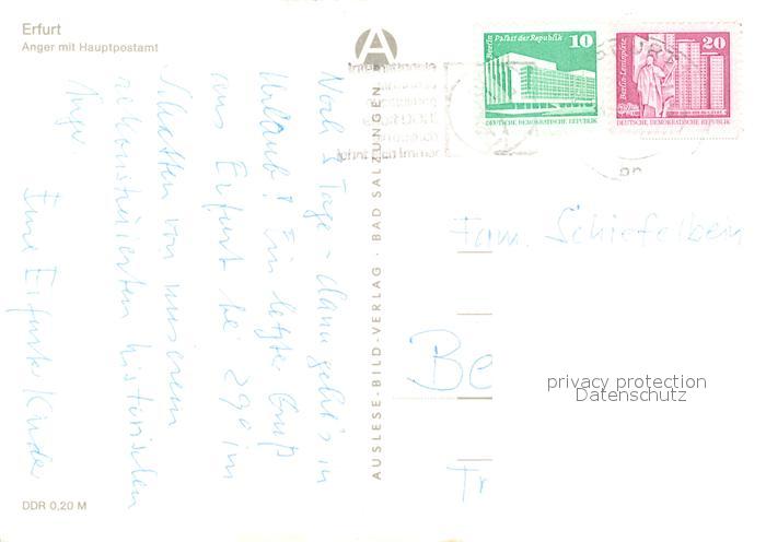 73097947 alte Postkarte Erfurt Anger mit Hauptpostamt postalisch gelaufen Erhaltung siehe scans [WerneD78] KatCode: 11110016051000