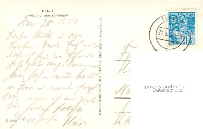73248499 alte Postkarte Erfurt Aufgang zum Stadtpark postalisch gelaufen Erhaltung siehe scans [WerneD78] KatCode: 11110016051000
